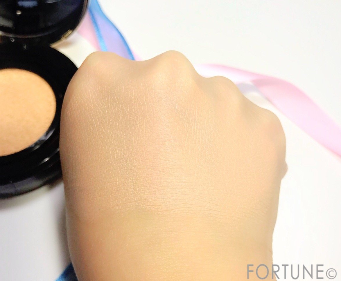 写真はわかりやすいように少し厚めにのせましたが、実際はとっても薄づきで肌に自然に馴染みます