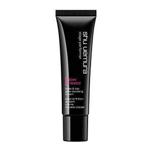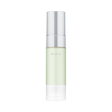 下地にはパール系の比較的ツヤ肌に仕上がるものを使います。まずは顔全体に薄く広げていき、その後にツヤを残したい部分に重ね付けます。そして、リキッドタイプの下地は崩れないように丁寧にスポンジで肌に下地を密着させます。