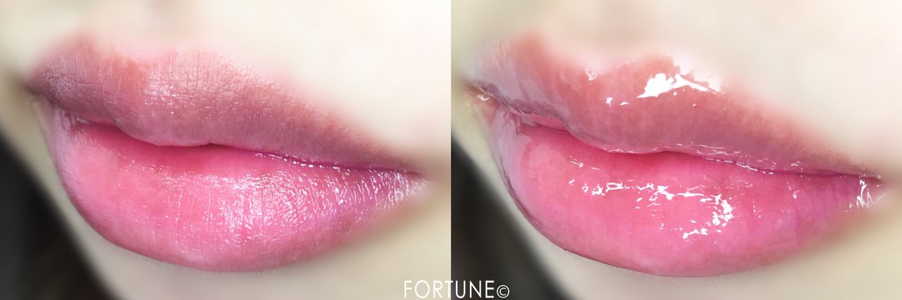 写真右:その状態にバースジェム グロス《12 tanzanite charm》を塗布