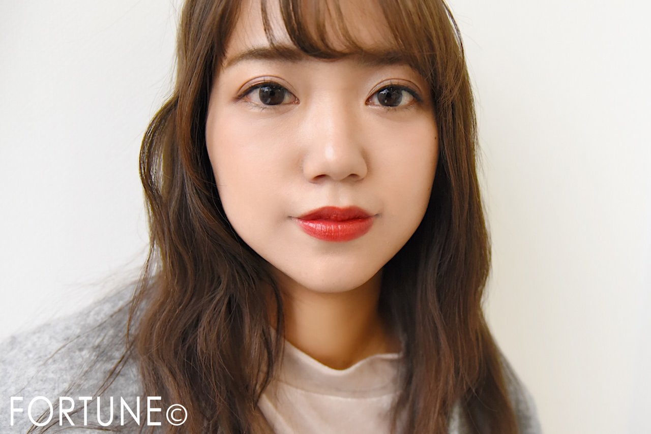 少しブラウンみのある赤で、馴染みやすく大人顔にしてくれます。