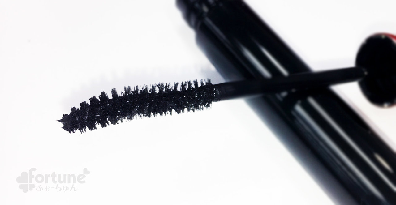 ブラシは細かいまつげ毛までキャッチできるように2段キャッチブラシになっていて、先端に角度がついているタイプです。この角度が重要で目尻にかけての横長ロングに仕上がるように設計されているそうです。