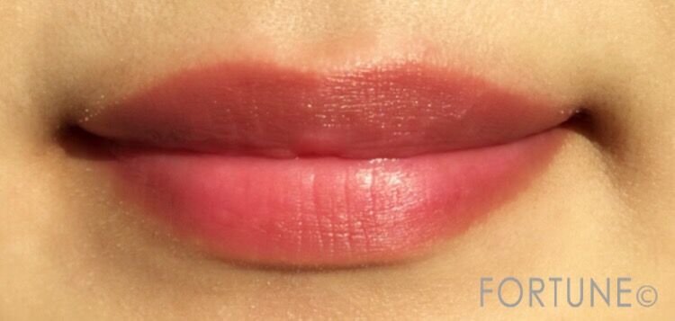 唇の水分によって発色するので、唇そのものを染め上げたような色合いに。