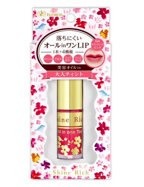 エロリップとして人気になったのはこちら!シャインリッチの『オールインワンティント』です。こちらは透け感のある発色がかわいらしいアイテムで、ベタつかないところも特徴◎なんと美容液が90%も配合されており、しっとりが続きます♡04番は主張しすぎないピンクで、使いやすいお色。