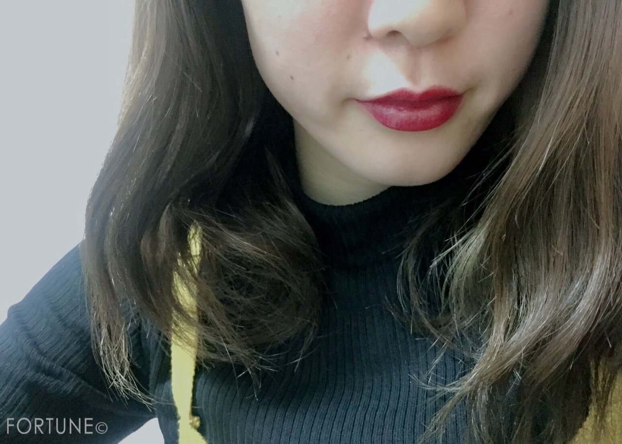 明るめの赤リップではなく、深めな赤リップなのでつけただけで、こなれ感のあるオシャレ顔に変身できますよ。