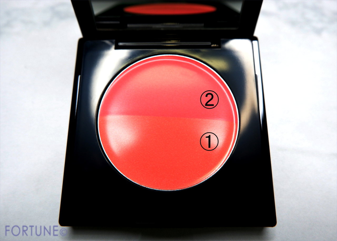手前と奥で違う色味となっており、強弱のある色味の違いが立体感のある頬に仕上げてくれます。