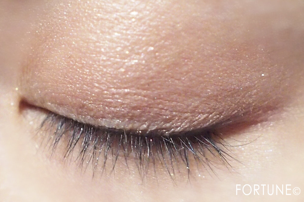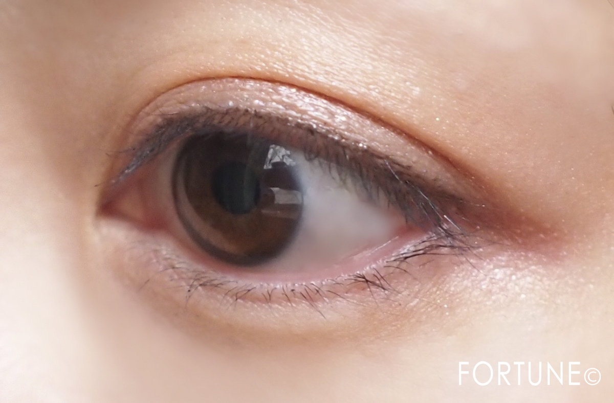 室内でも目元から浮かず、肌に馴染むピンクベージュに発色。