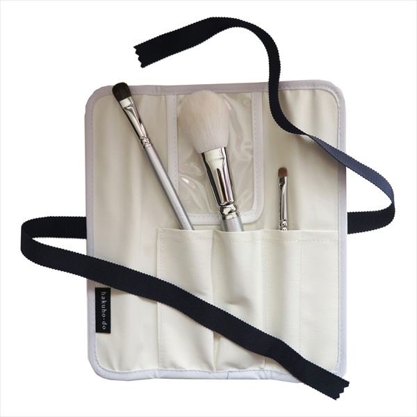 内容は山羊の「チークブラシ」・松リス・ノースアメリカンリス の「アイシャドウブラシ」・イタチの「シャドウライナー」の3点セットに上品なシルバーサテンの専用ポーチが付属しています。