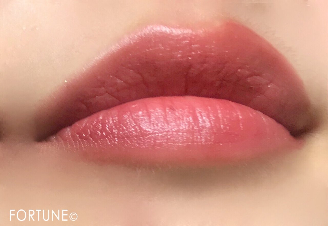 単色で塗布すると血色感をアップさせてくれます。唇をふっくらとみせてくれますね。