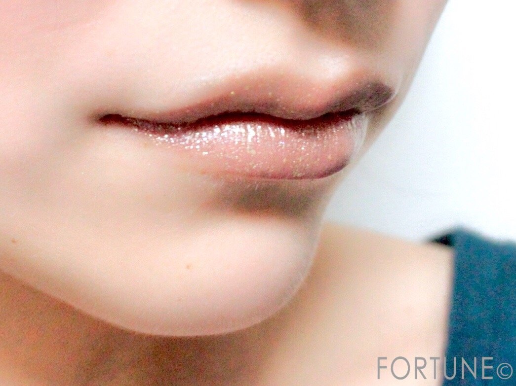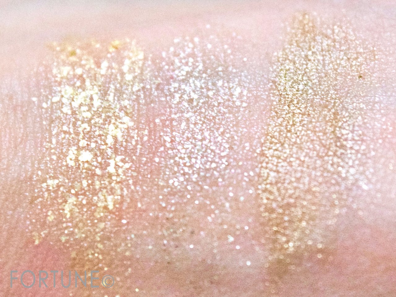 金色部分のラメが一番大きく一気に華やかで、キラキラ輝く唇になります。また、他のリップとの重ね付けが特にオススメです!更にアイシャドウに重ねても◎とのこと!