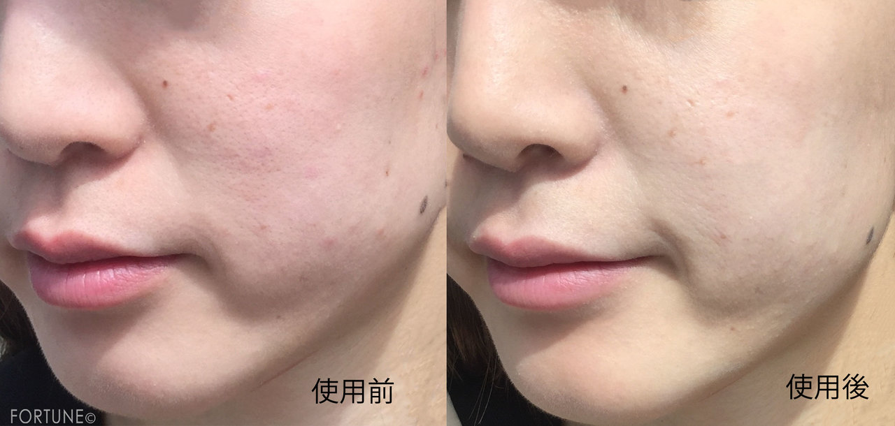 少量でカバー力があり、薄付きなのに赤みが全体的に引いているのが分かります。