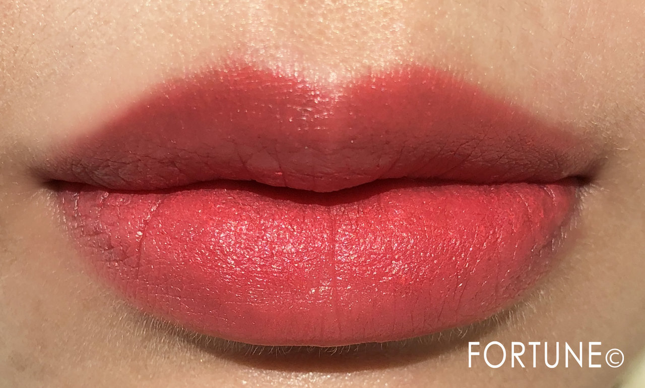 見たままの高発色!!テクスチャーも重たくなく、薄膜でベタつきもないセミマットな質感。色むらも出来にくく、扱いやすいです。しっかり密着するのにぼかしやすく、ぽんぽん塗りすれば抜け感が作れるし、他の色と合わせてグラデーションリップも作れます!発色が良いので直ぬりよりは、ブラシなどを使うのがオススメ!