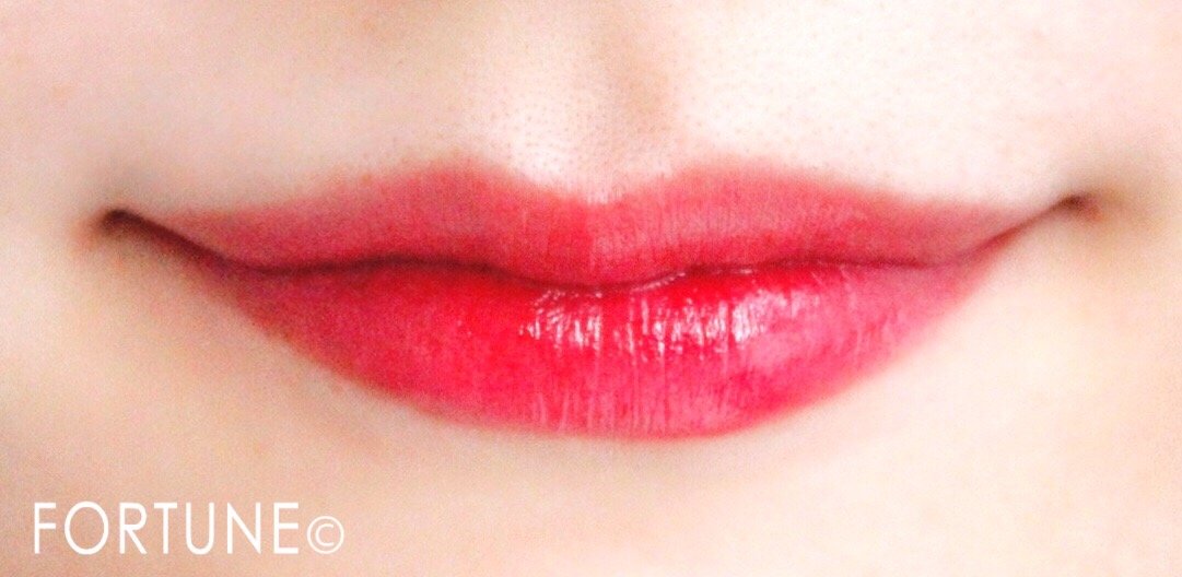 ちゅるんとした質感の透けるような赤リップは、赤リップ初心者さんにも簡単に使いこなせる1本。顔が派手になりすぎず、元々の唇の色を活かしたような発色が◎です!
