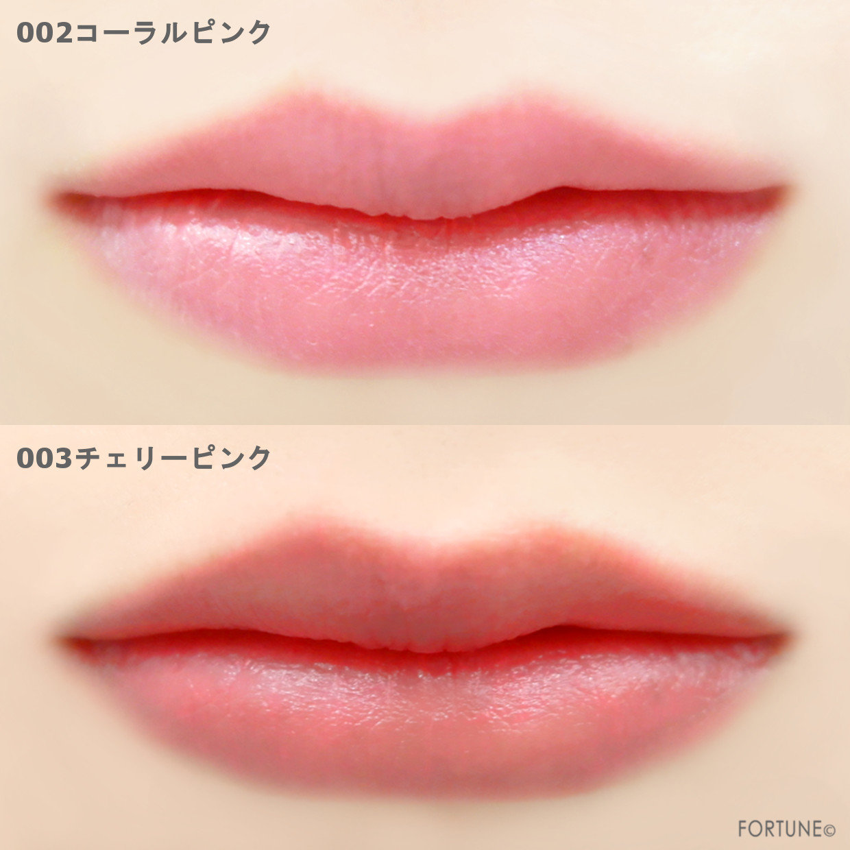 003番は、肌を明るく見せてくれるやや赤みの強い鮮やかなチェリーピンク。