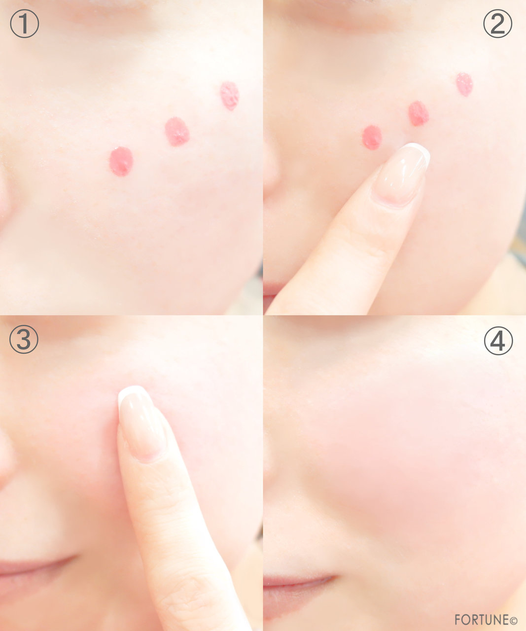 頬にのせればスルーっと伸び、ファンデーションがヨレることなく、ブラシやパフも必要なく、指1本でふんわりチークが完成します!
