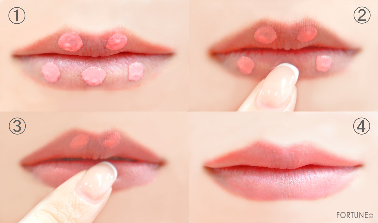 元々の唇の色素が薄い人は、3ヵ所ぐらいでOK!お好みの濃さに調節してしてくださいね。