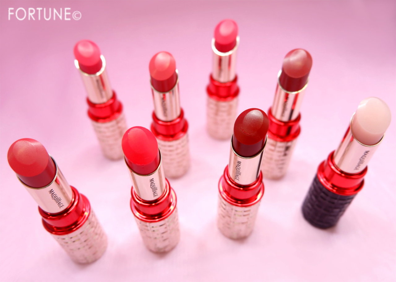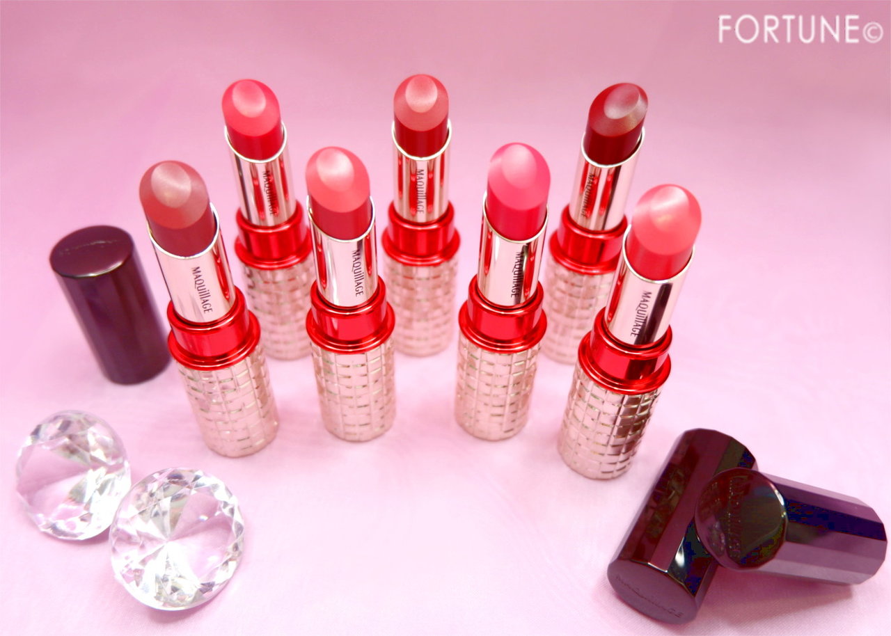 マキアージュ「ドラマティックルージュEX」は、全色シアーな発色。