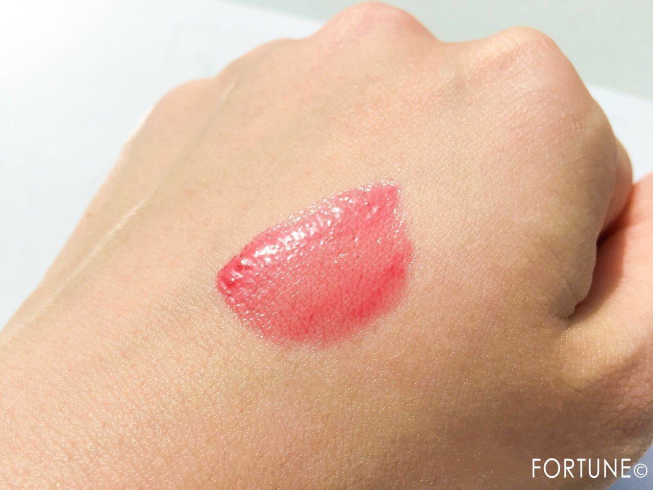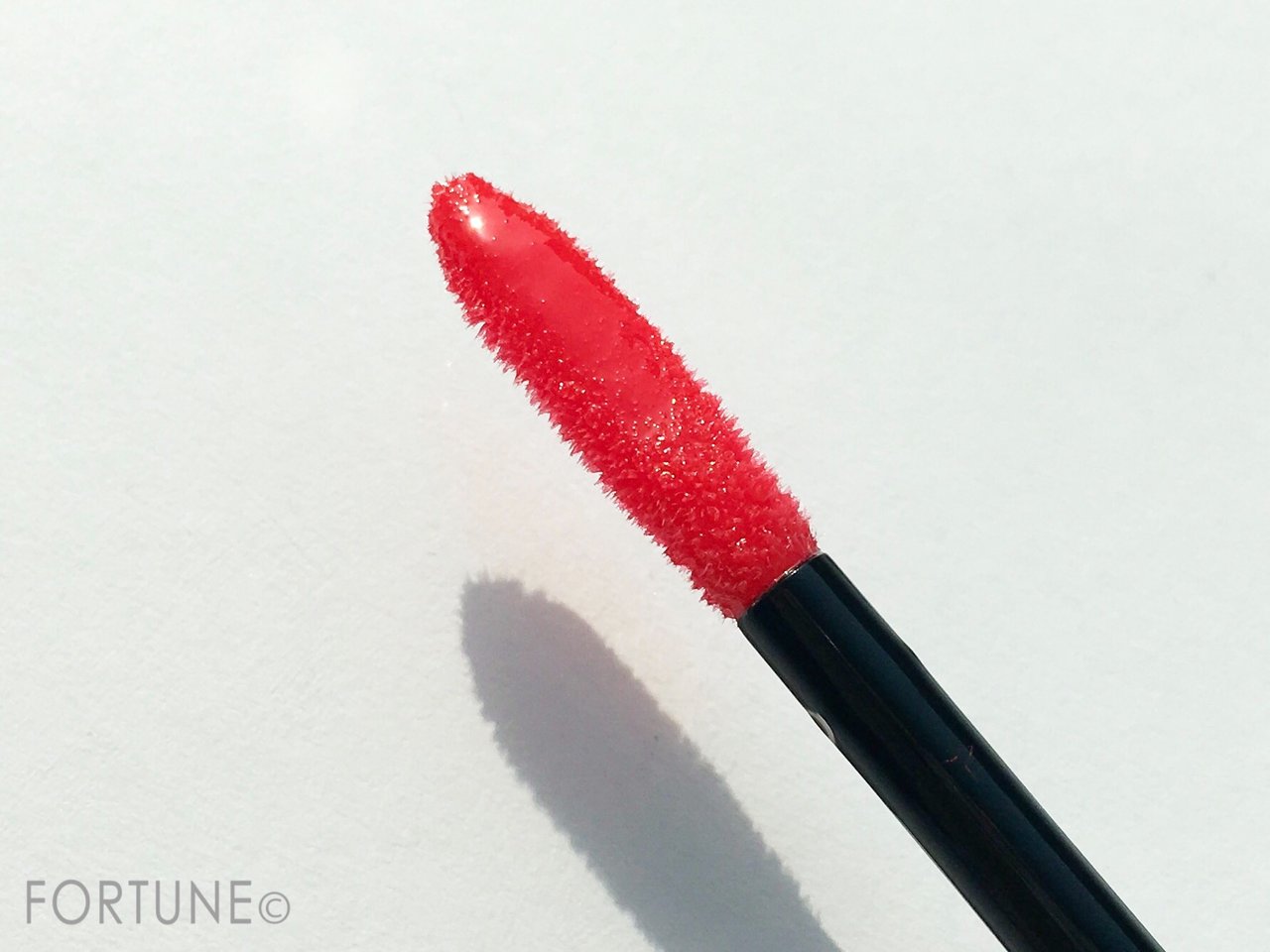 実際に唇にのせてみると、主張しすぎないのに顔色がパッと明るくなる鮮やかな発色!シアーなレッドが可愛らしく、オールシーズンで使える色味。