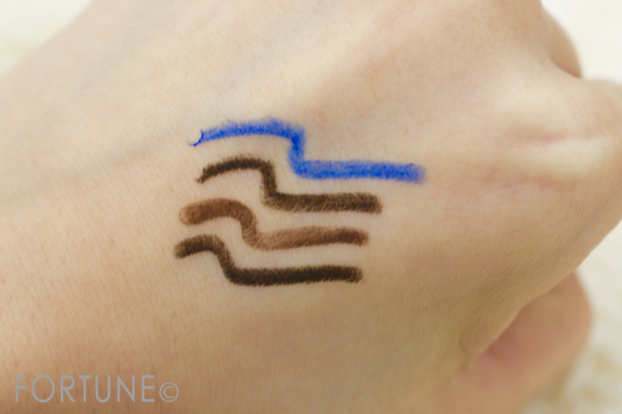 フォーカラーマルチペンは、名前の通りブラック、ブラウン、ブルーの三色のアイペンシルと、ヌードピンクのリップペンシルが一つになった遊び心満点のマルチペンです♡