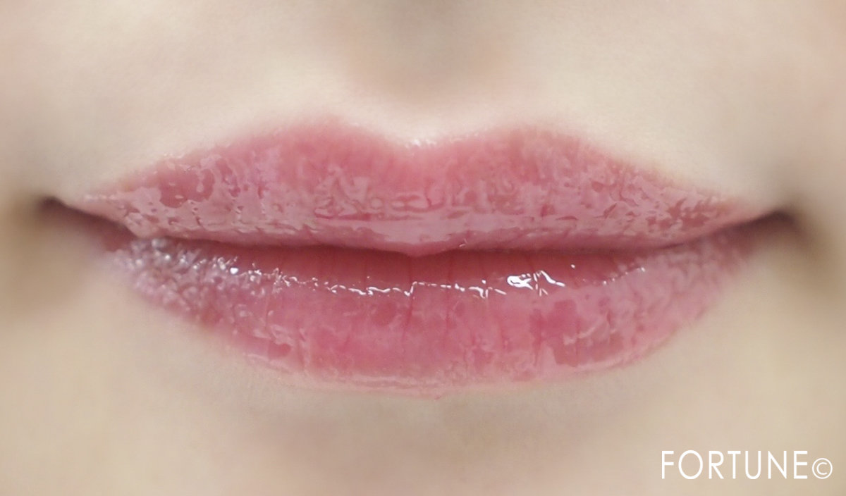 青みピンク系リップにジェルグロスリップ03を重ねるとこんな感じに。