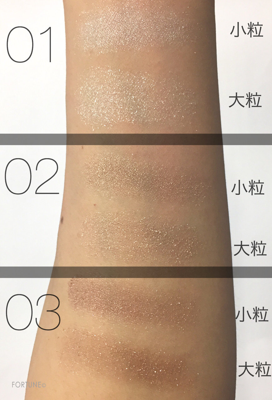 小粒ラメの[02]ロマンティックゴールドは、とっても肌馴染みがいいので、普段使いにも◎
