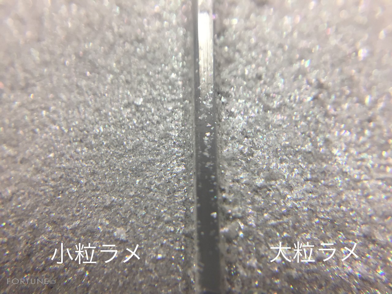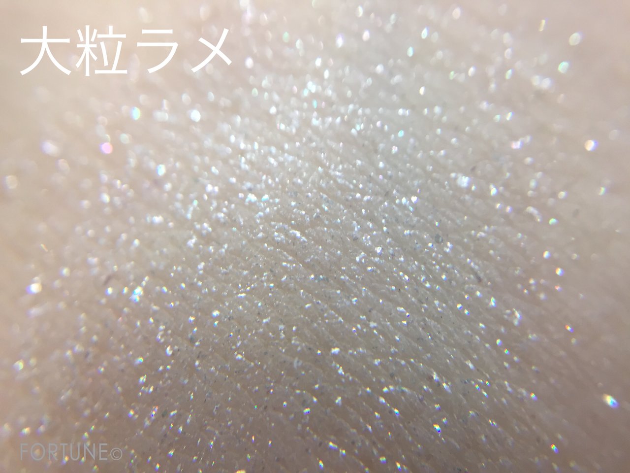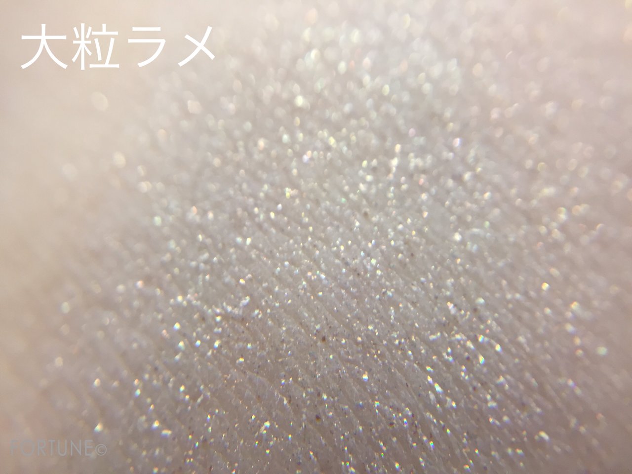 大粒ラメは白っぽいシルバーの輝きがしっかりと出てくれます。光が当たると多色に光るのも魅力。