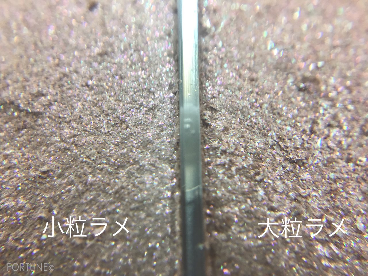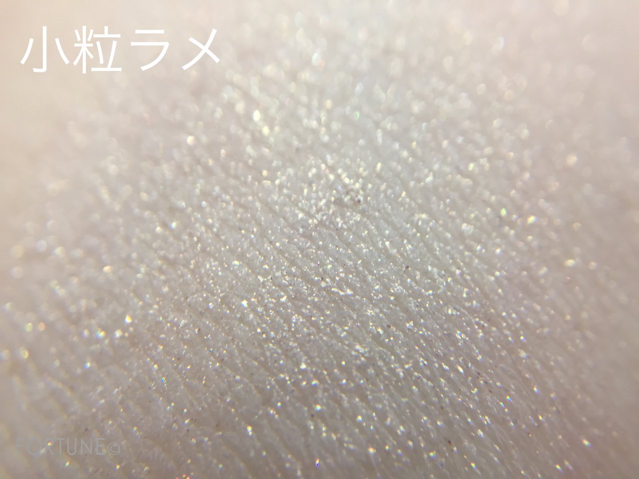 小粒ラメはとっても繊細で、優しい輝きです。色がほとんどつかないので、ベースとして塗ることで透明感と立体感がプラスできますよ。
