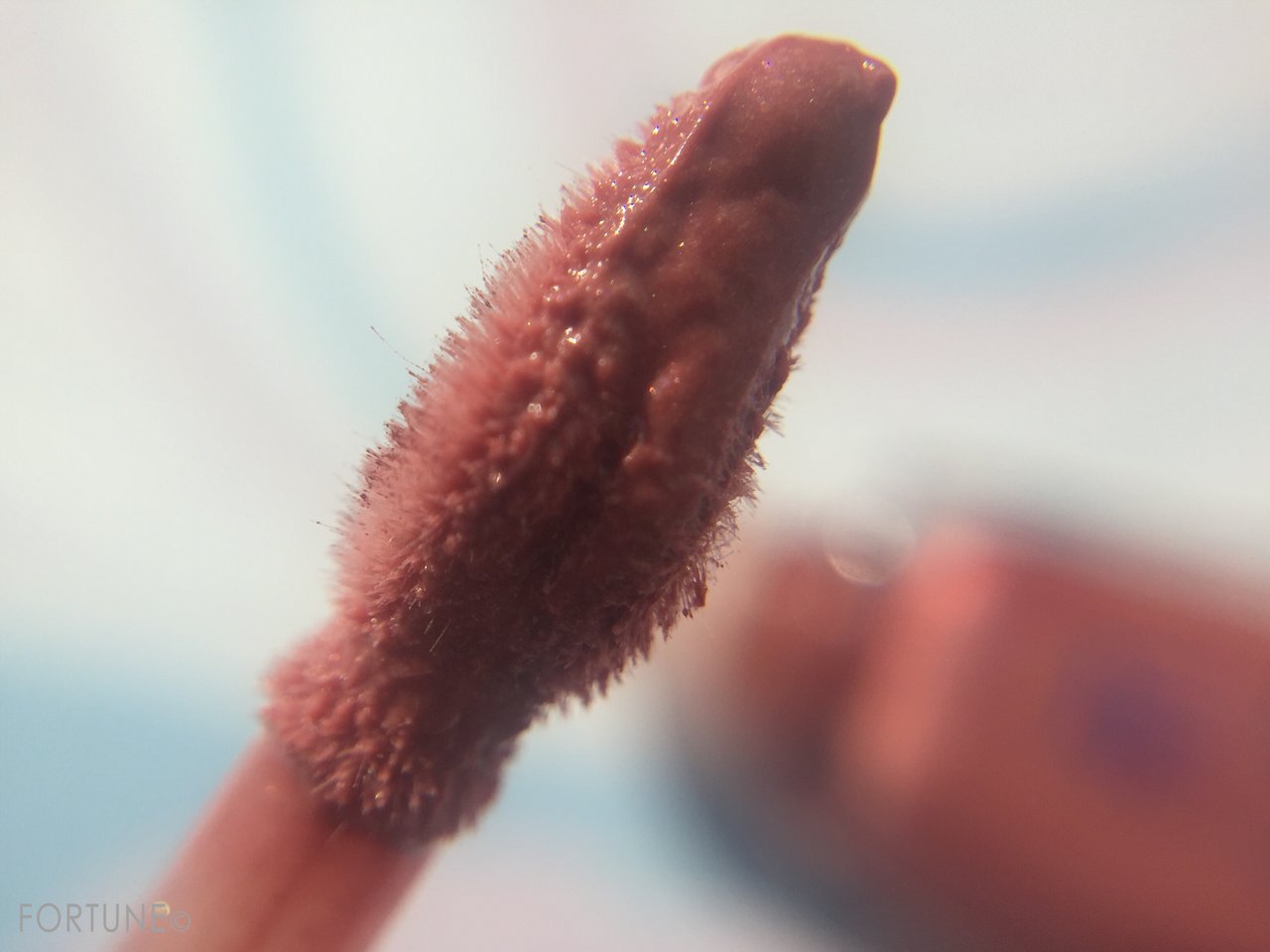 1)下唇はアプリケーターを唇の中心に縦でのせ、そこから口角に向かってアプリケーターの先端の細い部分をフィットさせるように塗っていきます。