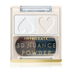 目の周りのくすみや、立体的な艶感をしっかり出したいときは、ラメ入りのハイライトがおすすめです。インテグレートの3Dニュアンスパウダーは、ふんわり柔らか肌とシルクのような光沢感のある2種類のパウダーがセットになっています。