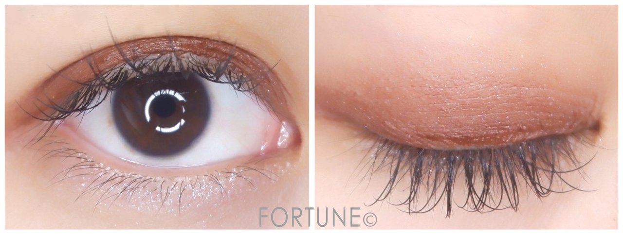 アプリケーターで二重幅より少し広めに塗り、まぶたとアイシャドウの境目を指でぼかしてみました。