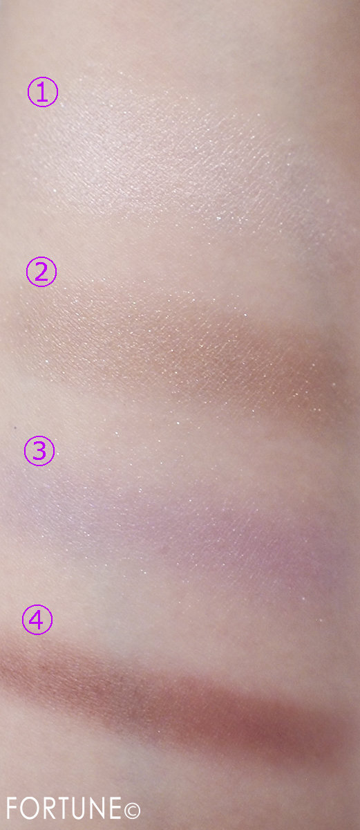 ③の淡いパープルは透明感を引き出してくれる青み系カラー。