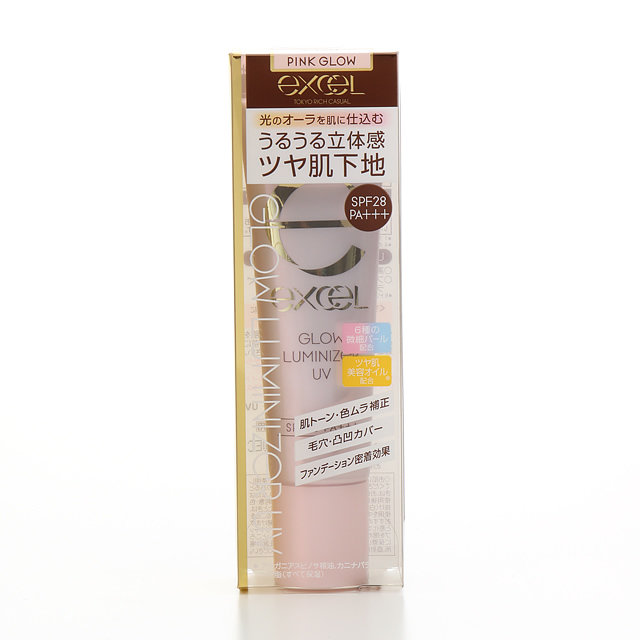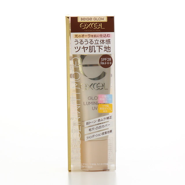 こちらは先ほど紹介したグロウルミナイザーUVのベージュカラー。GL02ベージュグロウは、肌の色味を均一にして、ツヤっとしたヌーディな美肌に仕上げてくれるカラーです。3種類の植物由来の美容オイルが入っているので、潤い効果も◎SPF28 PA+++も付いているので、外出時にもおすすめの化粧下地です♡