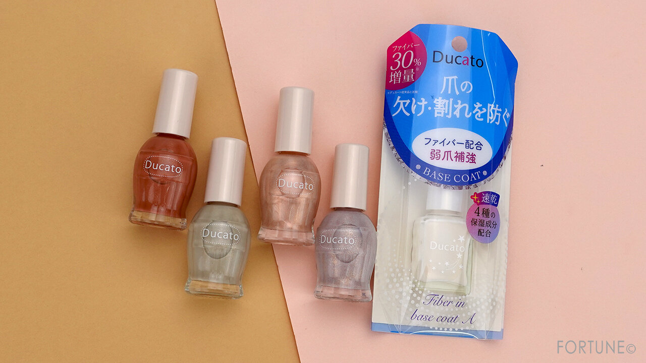 【Ducato(デュカート)】の冬限定カラー、『デュカート ナチュラルネイルカラー N』と爪をいたわり、ネイルカラーの発色を上げる『デュカート ファイバーインベースコー A』はこの秋冬に爪をやさしく、そして美しく彩ること間違いなしです。