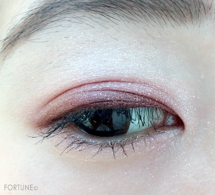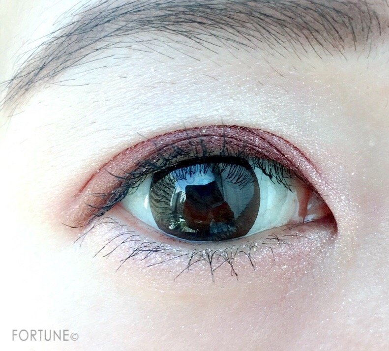 深めな色なので、ピンク系のメイクでも目が腫れたように見えませんよ。