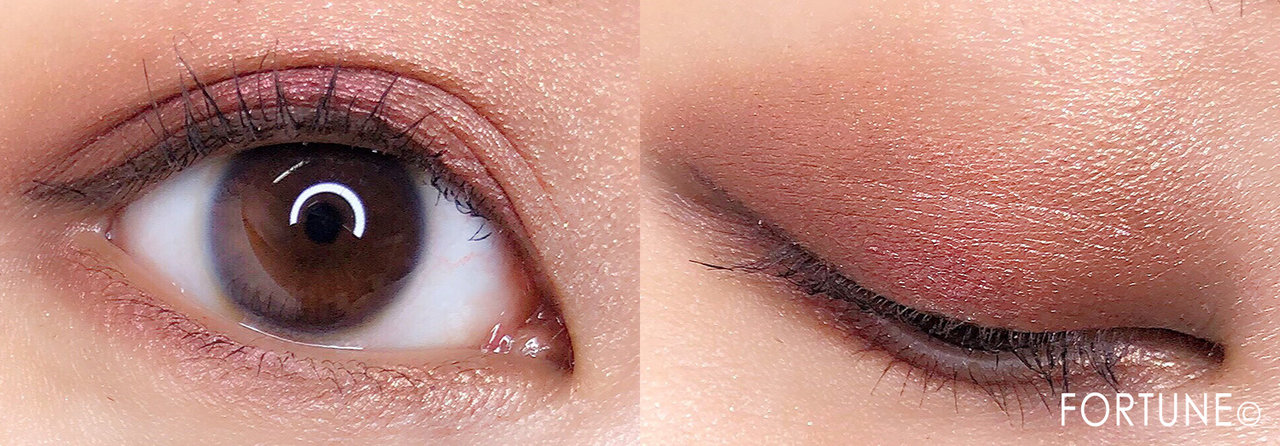 濃いベージュブラウンをベースにしているので、ほり深く大人っぽい仕上がりに。顔立ちをくっきりと華やかに見せてくれます。パーティーメイクにもぴったり!