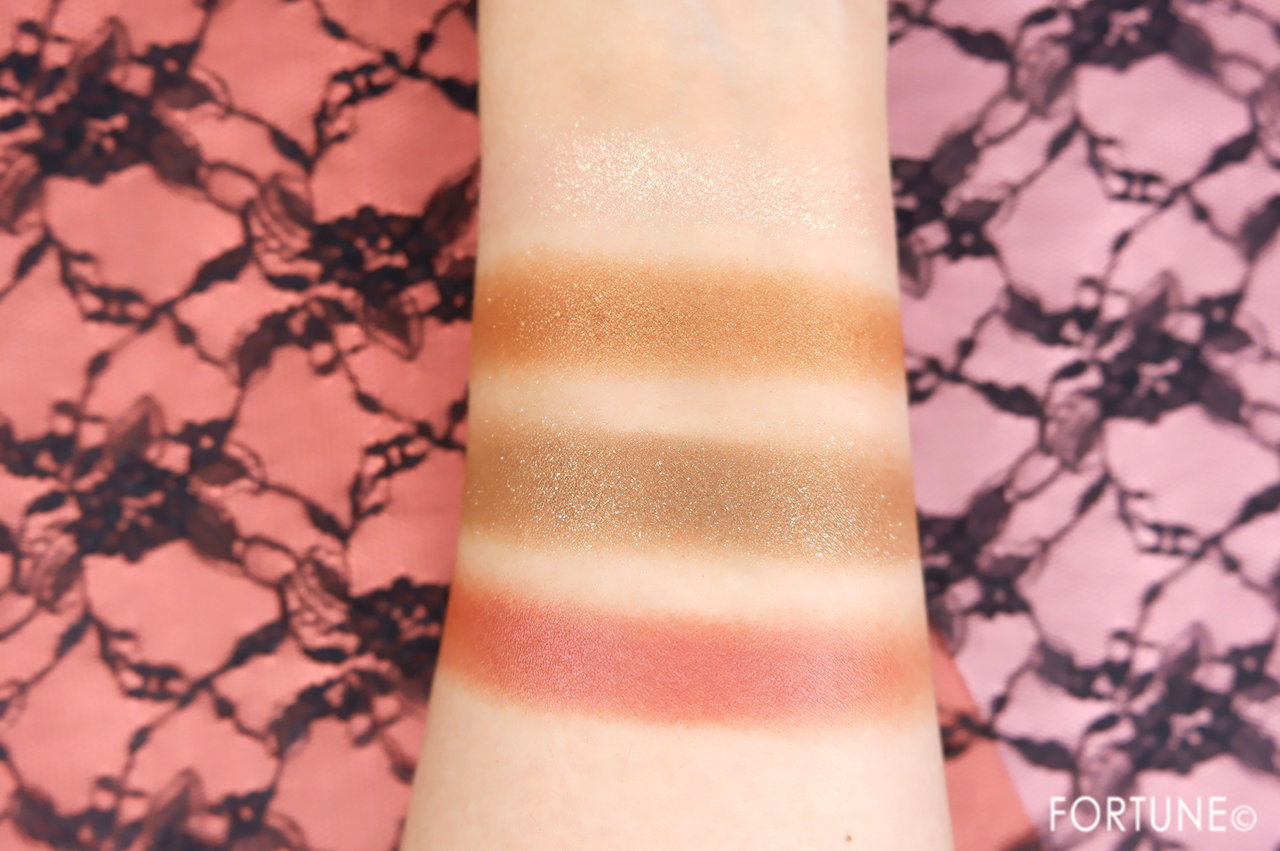 ①シマリングローズは、グリッターのたっぷり入ったローズカラー。