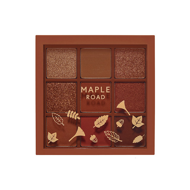 オンライン限定で新発売されるのは、ロマンチックに染まる優雅な夕焼けのような、温もり感あるレッドブラウンアイが叶う9色入りの新「プレイカラー アイシャドウ メープルロード」(写真左)。