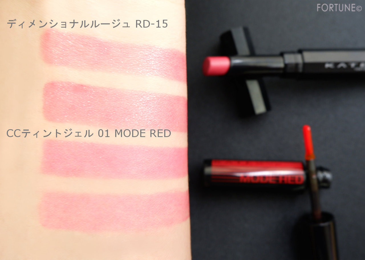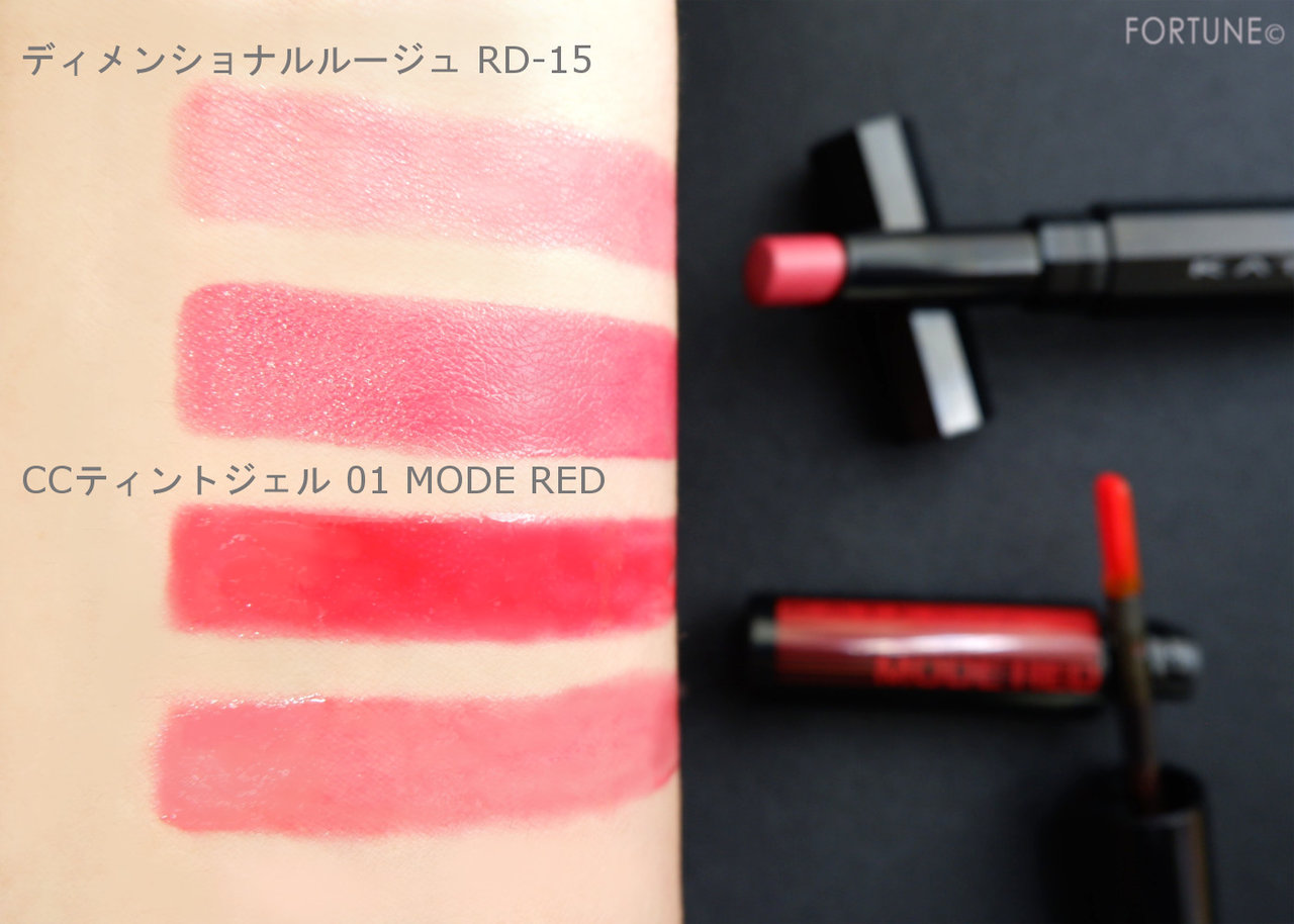 「ディメンショナルルージュ」と「CCティントジェル」の色味をチェック!