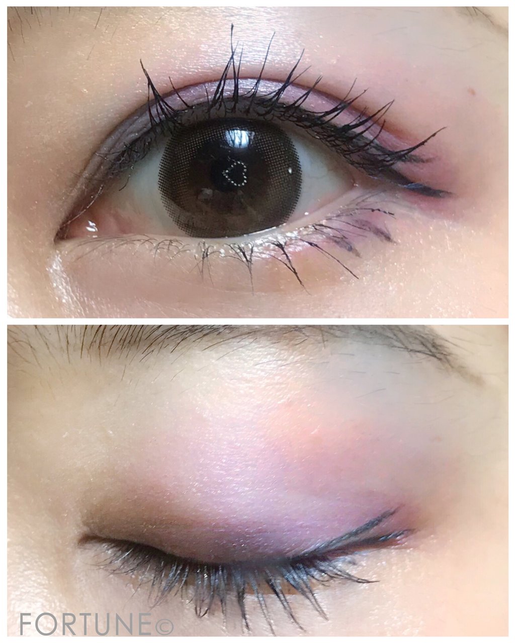 アイシャドウベース、アイシャドウ、アイライン、マスカラをしっかり塗布し、いずれもウォータープルーフのものを使用しています。