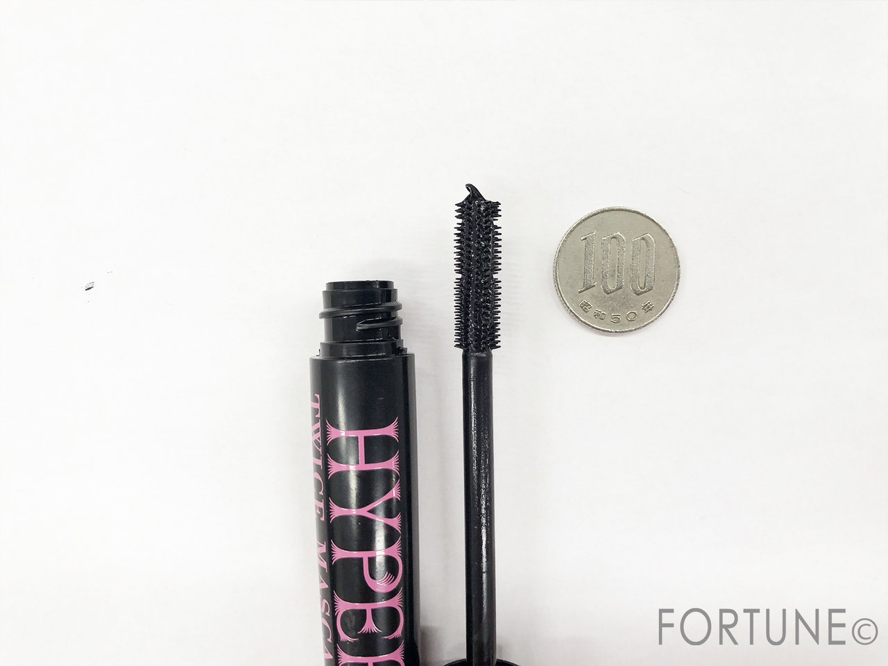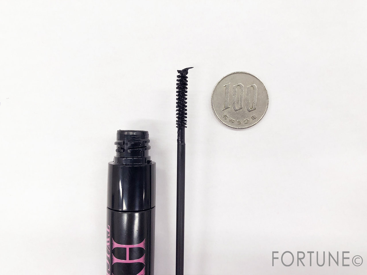 100円とブラシの大きさを比べたのがこちら。下まつげはもちろん、上まつげの根元や目尻側にも大活躍!まつ毛根元にしっかり塗る事で、目のフレームが際立ち目力がアップします。大きいブラシで根元を塗る時、目に入ってしまって痛い思いをした事ありませんか?内ブラシは極細だから目に入ってしまう事もありません。