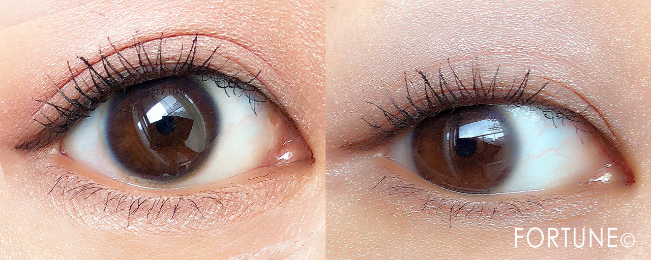 外ブラシと比べると、ナチュラルな仕上がり。繊細なまつ毛が作れます。上の写真ではアイラインはインラインと目尻のみ引いています。上まつげの根元にしっかりマスカラをつけた事でライン効果が増してくっきりした目元に仕上がりました。