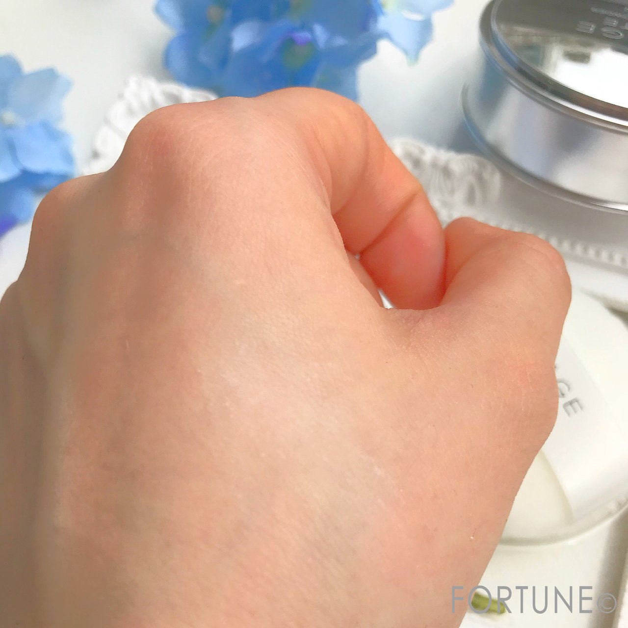 肌につけてみると、とてもきめ細かい粒子で非常にさらさらしています。