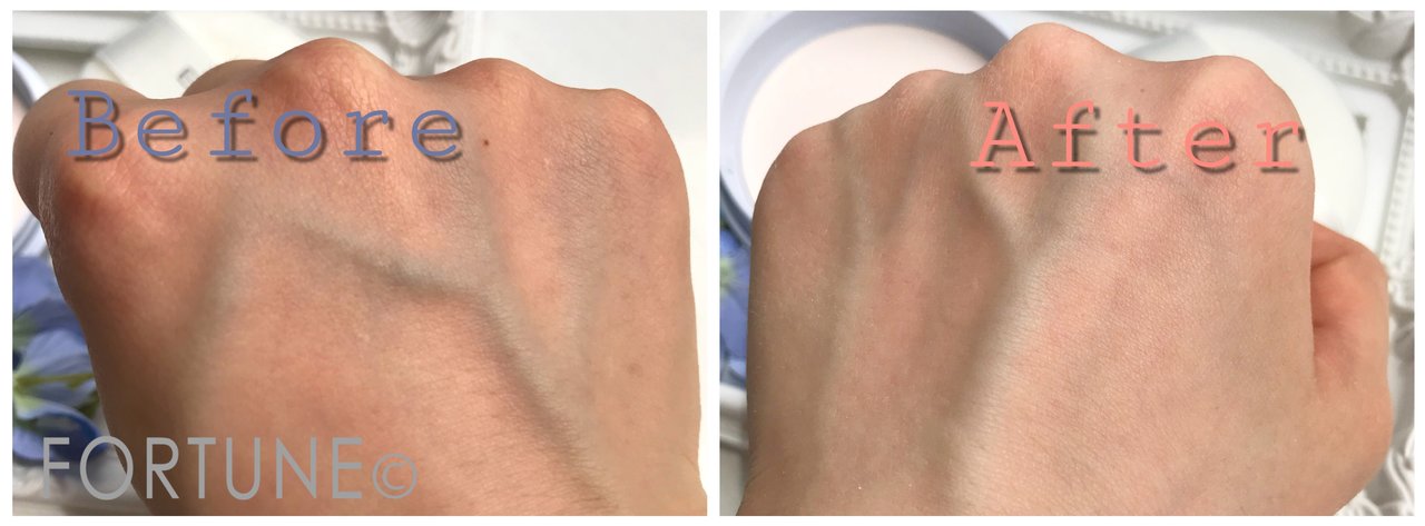 手の甲全体にしっかり塗ってみると、お肌の色がワントーン明るくなりました。