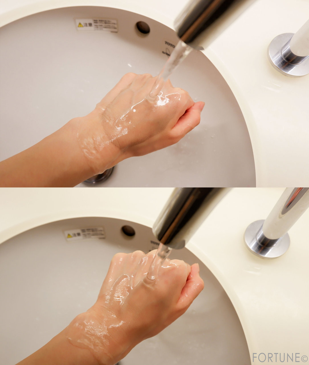 水かぬるま湯で洗い流すと、ゴシゴシしていなくても洗い上がりスッキリ◎