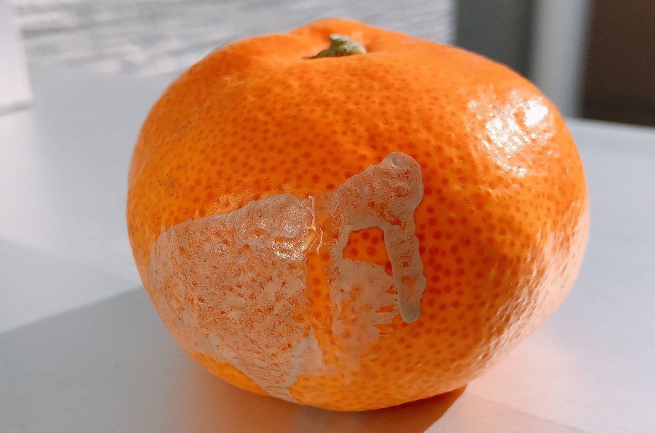 みかんにリキッドファンデを塗り、