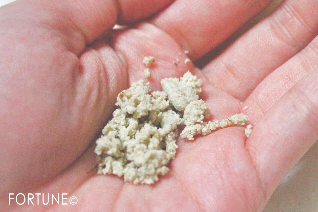 使い方は適量を手に取り、少しづつ水を加えてペースト状にしていきます。