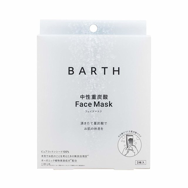 BARTHの中性重炭酸フェイスマスクは、重炭酸の力でトーンアップしたツヤ肌を作ることができるスキンケアアイテムです。