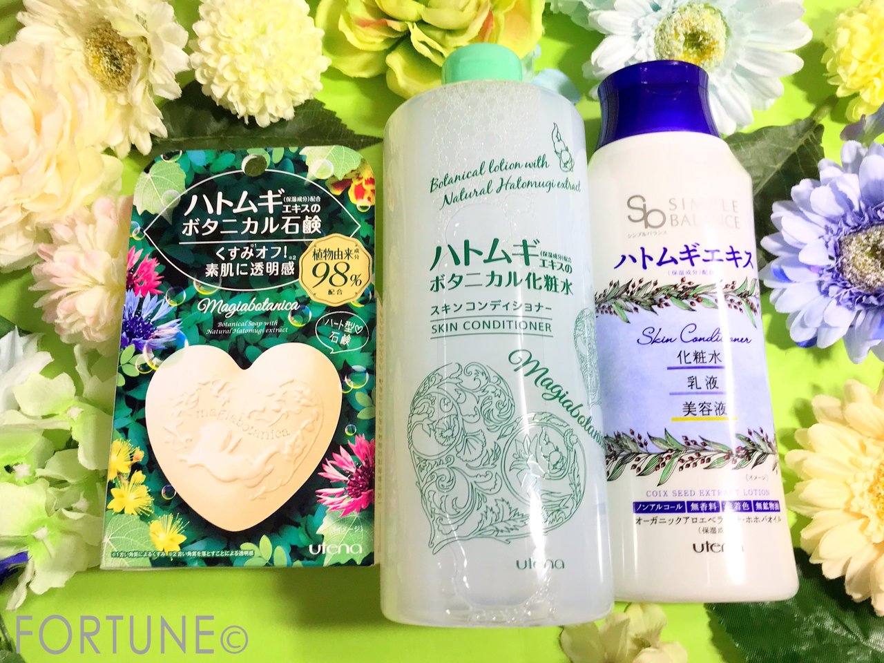 今回は“マジアボタニカシリーズ”のハトムギ化粧水「マジアボタニカ スキンコンディショナー」と「マジアボタニカ ボタニカル石鹸」、乾燥から肌を守る「シンプルバランス ハトムギローション」をピックアップ。